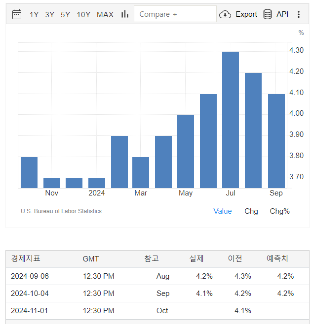 9월 실업률 : 4.1 %(전월 대비 0.1% p하락)