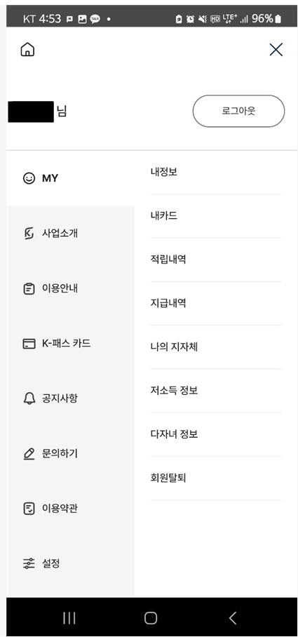 앱 또는 웹사이트 가입 : K-패스 앱이나 공식 웹사이트에서 회원가입